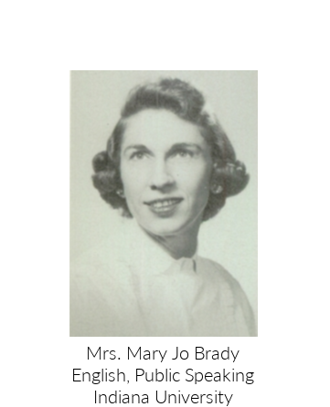 Every day after school I would go to play practice in the large school auditorium. At that time there was no such thing as wireless microphones, so all the plays were performed with no sound amplification of any kind. Mrs. Brady would sit in the back of the dark auditorium during rehearsals and would constantly yell, "I can't hear you!"